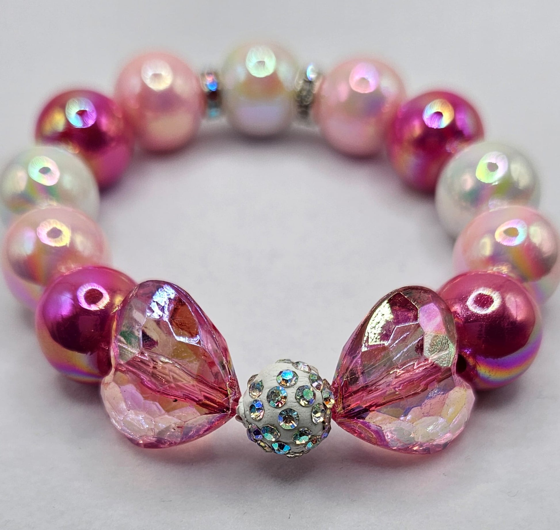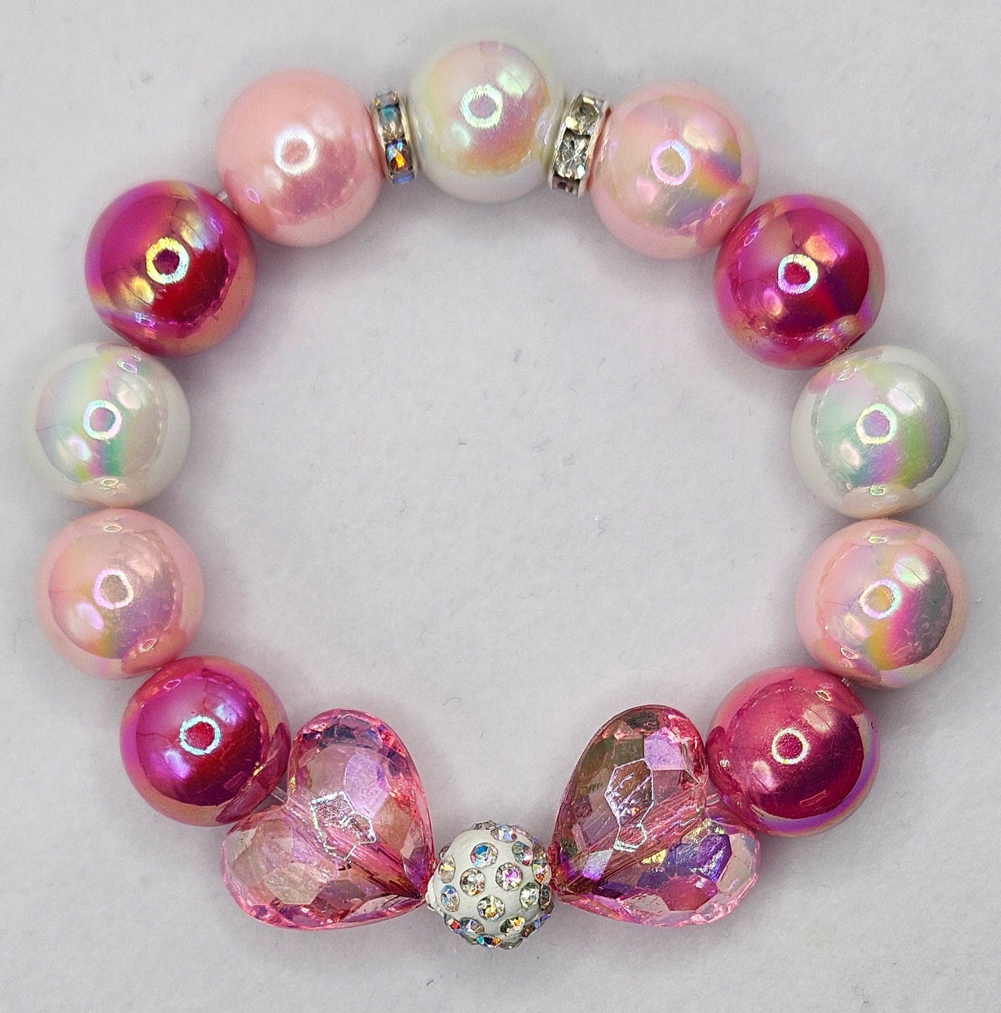 Zwei schimmernde Herzperlen in Pink, kombiniert mit einem glitzernden Zentrum. Perfekt für romantische Seelen.