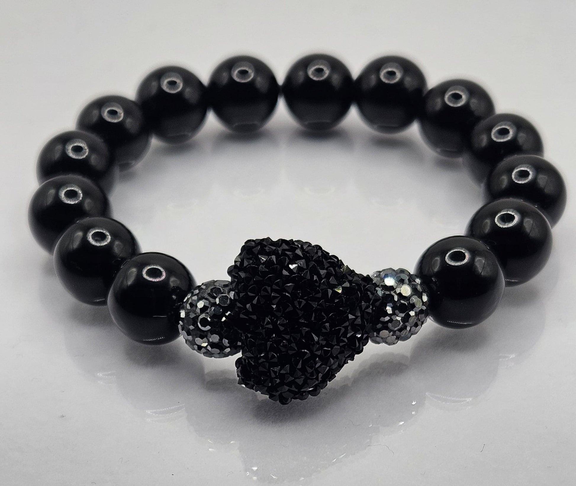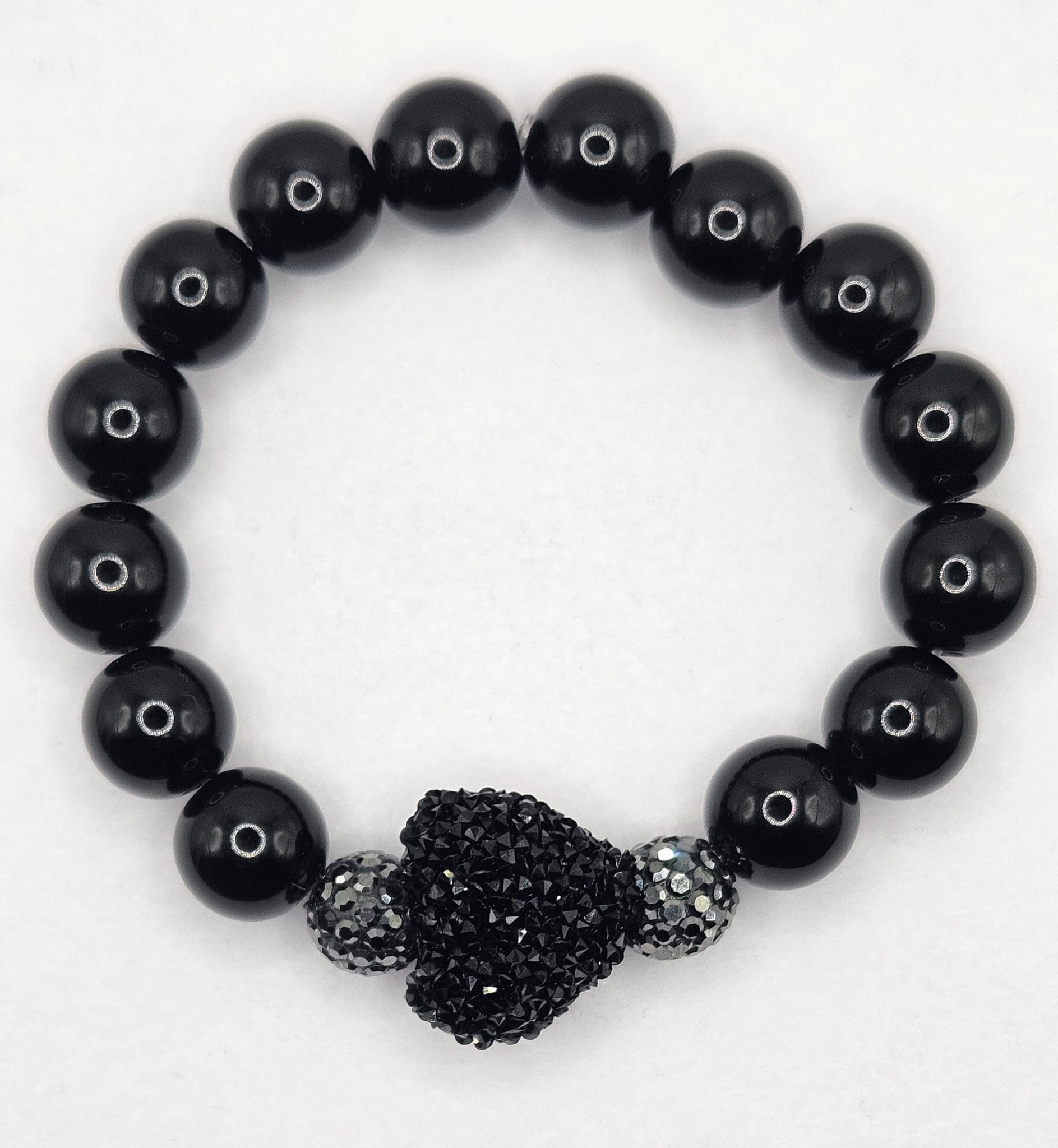 Tiefes Schwarz, glänzende Details und ein Herz aus schwarzen Silikon Kristallen verleihen diesem Armband eine geheimnisvolle Eleganz. Perfekt für alle, die einen Hauch von Dramatik lieben